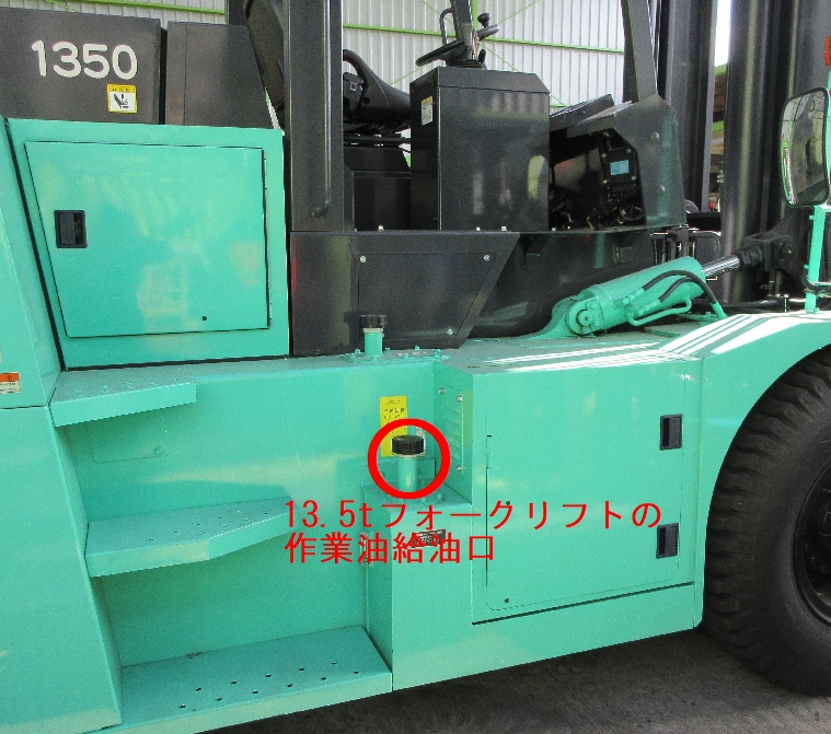 下の写真は 13.5t フォークリフトの作業油の給油口です。