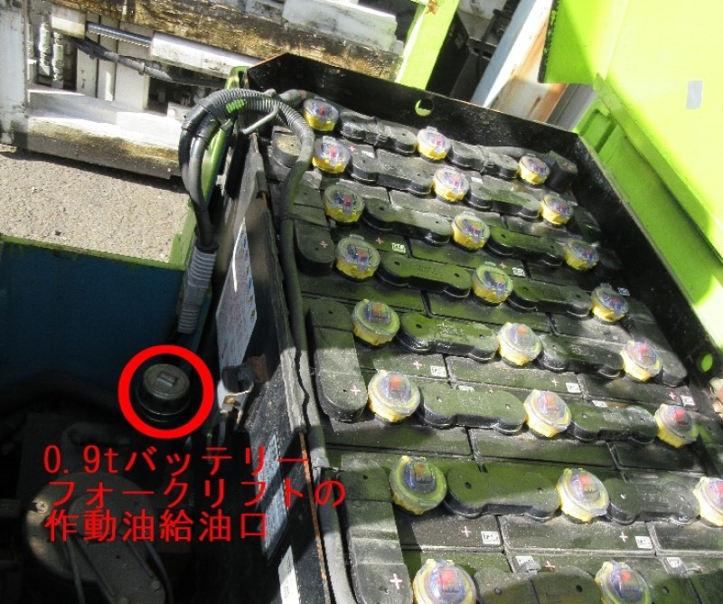 下の写真はトヨタ製バッテリーフォークリフト3FB9の作業油の給油口です。