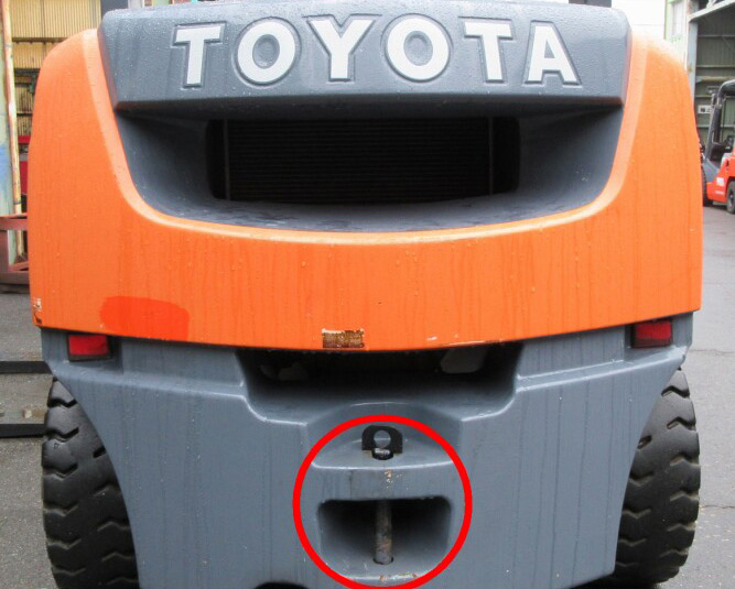 フォークリフトを積載車に積み込む際に重要な役割をするフックピンを紹介します。