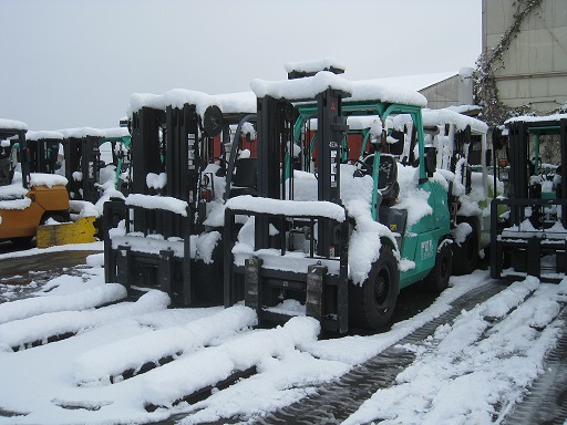 大雪の日のフォークリフト